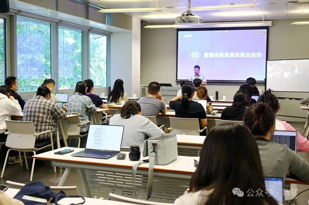 楊斌從國內(nèi)智慧水務(wù)發(fā)展現(xiàn)狀和趨勢(shì)、金控?cái)?shù)據(jù)的AI創(chuàng)新實(shí)踐以及對(duì)智慧水務(wù)創(chuàng)新的啟示等三個(gè)方面作報(bào)告,重點(diǎn)探討了人工智能在水務(wù)領(lǐng)域的創(chuàng)新潛力,并結(jié)合行業(yè)經(jīng)驗(yàn),分享了多個(gè)智慧水務(wù)產(chǎn)品的開發(fā)思路和實(shí)踐成果。通過報(bào)告,與會(huì)師生了解了智慧水務(wù)從自動(dòng)化、信息化、數(shù)字化到AI賦能的演進(jìn)過程。結(jié)合浙江某大型凈水廠的案例,楊斌詳細(xì)介紹了當(dāng)前智慧水廠的主要功能,包括數(shù)字孿生、工藝仿真、巡檢機(jī)器人、智能視頻、智能加藥、智能曝氣和數(shù)字化管理平臺(tái)等一系列技術(shù)的應(yīng)用。他表示,通過實(shí)施綜合的智慧化技術(shù),污水廠的生產(chǎn)、管理和人員成本可以得到有效降低,整體成本優(yōu)化潛能巨大。他還分享了金控?cái)?shù)據(jù)在水務(wù)+AI領(lǐng)域的創(chuàng)新實(shí)踐,通過基于AI創(chuàng)新的SVI污泥沉降檢測(cè)、微生物智能鏡檢、智能加藥、漏損計(jì)量?jī)x、“六無水廠”等產(chǎn)品的介紹,生動(dòng)展示了AI在水務(wù)行業(yè)的創(chuàng)新潛力,引起了與會(huì)師生的共鳴?!澳恐?,皆可AI”,楊斌說,通過機(jī)器視覺、大模型等人工智能技術(shù)的應(yīng)用,未來水廠將實(shí)現(xiàn)無人化,這也意味著該領(lǐng)域的創(chuàng)新潛力巨大,即將迎來行業(yè)發(fā)展的爆發(fā)期。