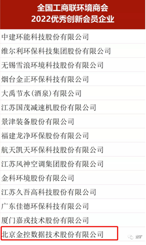 榮譽—金控數(shù)據(jù)榮獲全國工商聯(lián)環(huán)境商會“2022年度優(yōu)秀企業(yè)創(chuàng)新會員企業(yè)”稱號
