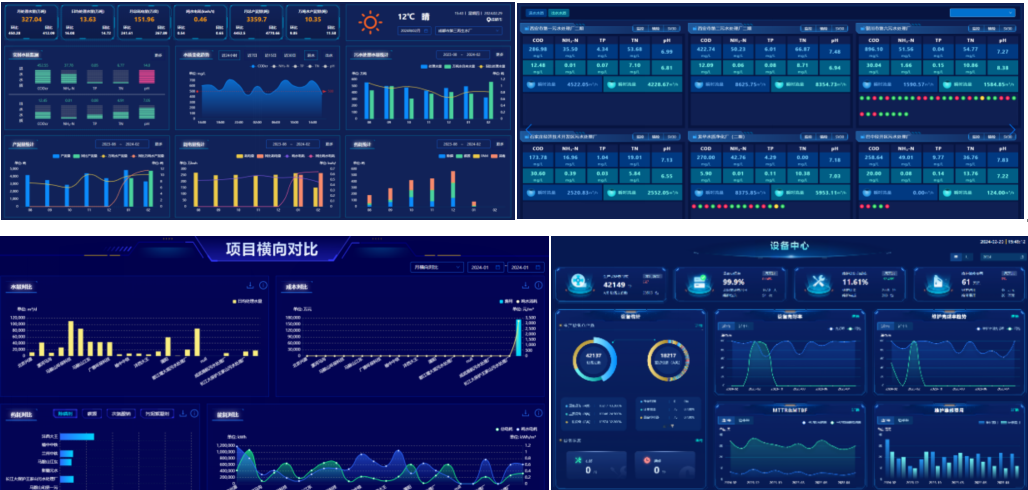 基于海量數(shù)據(jù),挖掘數(shù)據(jù)價(jià)值,從不同的角度出發(fā),包括數(shù)據(jù)中心、生產(chǎn)中心、項(xiàng)目橫向?qū)Ρ?、設(shè)備中心等,通過多個(gè)可視化數(shù)據(jù)展示頁面,全面了解運(yùn)營(yíng)相關(guān)水電藥泥、設(shè)備、運(yùn)維等各類數(shù)據(jù),利用數(shù)據(jù)為管理者提供決策參考。