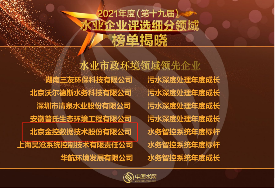 金控數(shù)據(jù)榮膺“2021水務智控系統(tǒng)年度標桿”